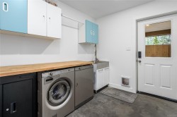 Stunning custom built 3 bdrm/2.5 bath contemporary home situated on .62 acre lot in desirable Gartley Point oceanfront neighbourhood. Built by Facet Custom Builders, this gorgeous 2-level home of 2273 sf offers high energy efficiency, heated concrete floors, HRV system, hot water on demand & modern amenities. Main floor open design kitchen with adjoining dining/living areas features vaulted ceiling/skylight, sleek cabinetry, sizeable centre island, quartz countertops & Bertazzoni gas stove. Spacious primary bdrm with walk-in closet & designer 5-pce ensuite with feature tile wall, soaker tub & walk-in shower. Fabulous side entry mudroom! Downstairs family room, 2 more bdrms, 4-pce bath, additional office/flex room with built-in Murphy bed, laundry room with basement entry. Enjoy the covered deck, ample open parking, outbuildings, farmland views & oceanfront access nearby! Zoning is R-1 & the septic system will accommodate the addition of a carriage house. A must-see home & property!