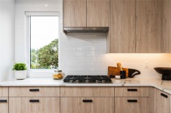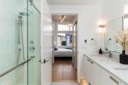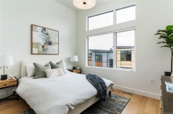 JUST LISTED! Luxury 3-bed, 4-bath, 2000+ sq ft townhome in a quiet enclave surrounded by mature homes & friendly neighbourhood. Contemporary features including soaring rooflines, stone/wood accents, transom windows + LR, DR, media room & office nook. Main level: 9' coffered ceilings, floor-to-ceiling windows, engineered hardwood floors, fireplace, gourmet kitchen w/ quartz counters, wall oven, gas cooktop, XL island, SS appliances, open-concept dining, & powder rm. Upstairs: vaulted 13' ceilings, luxe primary w/ walk-through closet & spa-like ensuite, 2 more beds, full bath & laundry. Lower: 8' ceilings, media/rec room, additionation storage, utility closet & EV-ready garage. Extras: remote blinds, HW on demand, heat pump, organizers & quality fixtures. Fenced yard backing green space w/ water feature, shared garden bed plots & community park. Built by award-winning White Wolf Homes with full New Home Warranty. Mins to shops, trails & downtown Victoria.