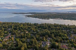 A stately stone ext. French Country Manor in prestigious Wedgewood Point on Ten Mile Point. This luxurious home features a blend of timeless design, craftsmanship & comforts of modern living. Backing onto Benson Park, enjoy peace, privacy & nature on this 1/3 acre of lush landscaped grounds w/stone pathways, raised & irrigated veggie/fruit gardens, deck, covered patio & hot-tub, bathed in SW light. Inside, architectural interest abounds w/custom cabinetry throughout; coffered ceilings, wainscotting & distinctive features. The kitchen, a statement of glamour offers bespoke cabinetry, Wolf & Sub-Zero, built-in coffee station & stone counters.Vaulted Great Rm w/dramatic floor to ceiling library wall w/rolling ladder. Upstairs, a primary suite w/Juliet balcony, 2 walk-in closets, spa-like ensuite w/soaker tub & steam shower. 2 additional BR’s, main bth & laundry complete the upstairs. Dble garage+detached single garage w/400+sqft loft studio w/bth offer flexible living/workspace options.