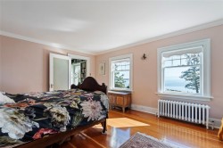 Absolutely stunning, this south-facing waterfront estate in prestigious Ten Mile Point offers breathtaking views of Chatham, Discovery, and the Chain Islands. Set on nearly 1.5 acres of unparalleled privacy, the property features one of the largest and most beautiful oceanfront gardens on the market today, with formal landscaping dating to the 1930s. The grand main residence boasts generous principal rooms, three bedrooms, and a spectacular glass conservatory—all with unobstructed ocean views. A chef’s dream kitchen anchors the home, while water features and a fenced vegetable garden with greenhouse enhance the grounds. A charming guest cottage doubles as an office/studio, complete with kitchenette, 1.5 baths, and a loft bedroom. Enjoy private beach access, a large boathouse, and your own enclosed waterfront sanctuary protected by a deer fence. This rare offering blends timeless elegance, unmatched setting, and coastal luxury in perfect harmony.
