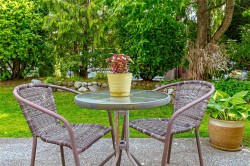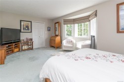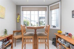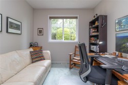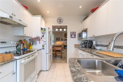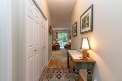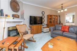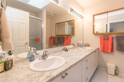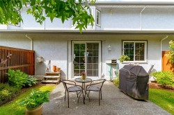 This 3 bedroom, 3 bath townhouse has the right combination of being an immaculate home with a private south facing backyard. With over 1,700 sq. ft. of comfortable living space, the rooms are generous in size. The living & dining room have a 9' ceiling, with tinted sliding glass doors leading out to the backyard. The bright kitchen with ample counter & cupboard space, has a cozy eating area with bay window. On the main floor, there's one bedroom or office (no closet) with two other bedrooms upstairs. The spacious primary bedroom is 19' x 11' with a walk-in closet & 4-piece ensuite with walk-in shower. The furnace (5 years old), hot water tank (new), fireplace, & BBQ are all gas. Floors are porcelain tile, hardwood & carpet. Garage + 1 open parking space, crawlspace, storage area. New low flow chair height toilets, all windows except the sliding glass doors were replaced in 2023. Pets are welcome here 2 cats & or 2 dogs. (see bylaws)