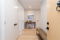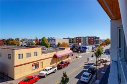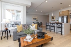 Welcome to the heart of Sidney-by-the-Sea, where everyday life feels like a getaway. Step outside to the waterfront, vibrant markets, and cozy cafés that define this friendly coastal town. Built in 2023 and still under home warranty, this modern 2-bed, 2-bath condo offers 1,244 sq ft of refined living with 9-ft ceilings, huge windows, AC, in-suite laundry and two private balconies. The kitchen pairs form and function with quartz countertops, a gas range, and premium appliances, flowing seamlessly into a bright, open living space with a gas fireplace. The spacious primary suite features heated floors, a walk-in glass shower, and double vanity. Freshly painted with thoughtful upgrades like powered blinds, motion-sensor lighting, and custom storage. Secure parking with common EV charger, separate storage, and a bike locker complete this exceptional home. The Beacon offers modern comfort in one of Vancouver Island’s most walkable seaside communities.