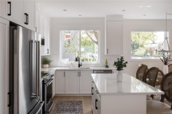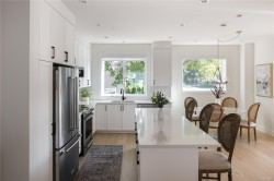 OPEN HOUSE Saturday 1-3PM. Proud to present The Bayside Towns on Fifth - a curated collection of 16 townhomes in Sidney's most desirable neighbourhoods, ROBERT'S BAY. Offering a modern farmhouse aesthetic & varied layouts appealing to young families through to active retirees. This larger end location plan offers 3 spacious bedrooms on the upper level including the primary with ensuite. 4th bedroom or office located on the lower level with its own 3 pce bath. Light wide-plank hardwood throughout entry and main level plus large picture windows that will keep the home light & bright. Custom white kitchen cabinets with quartz counters, generous island & stainless appliances. Efficient heat pump for year round heating and cooling. In-floor heat in all tiled bathrooms. Interlocking brick, fully fenced southeast facing patio with irrigation. Close to beaches, trails and easy walk to Beacon Ave, this is a 12/10 location!