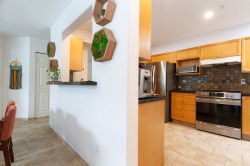 This beautifully updated condo lives more like a townhouse, offering two spacious bedrooms plus a versatile loft with vaulted ceilings and a built-in Murphy bed. The unique layout is bright and inviting, with mountain views framed by oversized windows and the warmth of a new high-efficiency gas fireplace. Fresh paint, modern vinyl flooring, plush carpet, and a custom desert mural add style and character throughout. The kitchen features a new refrigerator and oven, ready for everyday living or entertaining. Enjoy access to a private rooftop deck along with standout building amenities, including a rentable guest suite, RV and extra parking, car-care stations, and a fully equipped gym. All set in a prime downtown location, steps from Squamish’s best dining, shopping, and entertainment.