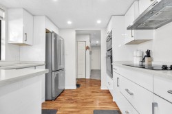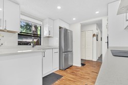 Welcome to Suncreek Estates! This bright, ground-level corner townhome offers 3 spacious bedrooms and 2 full bathrooms — all on one level with no stairs. Updated with a new modern kitchen, countertops, appliances, bathrooms, carpet, and pot lights, this home is move-in ready. Ideally located across from W.E. Kinvig Elementary, near parks, shopping, and transit — perfect for families seeking comfort, style, and convenience. Conveniently situated near King George Boulevard. Prepaid lease until 2092. Leasehold property requires min. 20% down. Maintenance fee includes property taxes, water, sewer, and garbage.