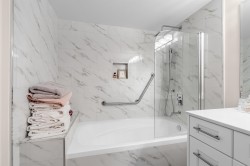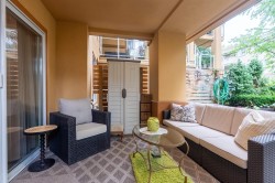 Discover this spacious, beautifully updated ground-level home in the highly desirable Villa Pacific community. Bright and inviting, it features large windows, elegant vinyl flooring, a cozy gas fireplace, and a modern kitchen with high-end LG appliances and refreshed bathrooms. The smart floor plan offers two well-separated bedrooms: a king-sized primary suite with refined ensuite and a generous queen-sized second bedroom. Step outside to your expansive, private covered patio, perfect for year-round enjoyment. The proactive strata has completed major upgrades and maintains a robust $681K contingency fund. Enjoy premium amenities—fitness centre, workshop, library, lounge, bike storage, and car wash—plus secure parking and storage locker. Set in a peaceful, walkable area near Semiahmoo Trail
