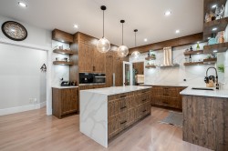 This is a stunning 3 level completely renovated home in sought after neighbourhood of Fraser Heights. Upgrades include new windows, new flooring, new staircase, all new cabinets/counter tops, modern bathrooms, designer lighting and much more. Newer A/C unit and H/W tank in 2021. Main floor offers an open layout with a chef-inspired custom kitchen and premium Miele appliances, plus a wok kitchen. Upstairs features a luxurious primary suite with a spa-like ensuite, plus additional 4 bedrooms for a large family. The finished basement offers mortgage helpers plus a media room. Private backyard with custom built covered patio. Close to top schools, parks, shopping, transit and easy access to Hwy 1 & Hwy 17. See Matterport walkthrough in the Virtual link. This home truly checks all your boxes!!