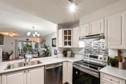 Bright and spacious ground-floor corner condo offering over 1,000 sq. ft. of comfortable living in the heart of Bolivar Heights. This 2-bedroom, 2-bath home features an open-concept layout, updated kitchen with stainless steel appliances, and new flooring in the kitchen and bathrooms. Enjoy your huge private outdoor area, perfect for relaxing or entertaining. Cozy gas fireplace (included in strata fee) plus access to a hot tub, sauna, and fitness room. Steps to Guildford Mall, Recreation Centre, Library, and easy access to Hwy 1. First time homebuyers, this is perfect for you!