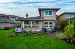 Welcome to Orchard Park, one of South Surrey’s most desirable townhome communities. Steps from parks, shops, restaurants, the library, and transit, yet offering rare peace and privacy. This spacious, recently renovated 2 bed, 3 bath townhome/duplex backs onto a quiet greenbelt with a walking path. Updates include new window, flooring, cabinetry, appliances, lighting, paint, tankless water heater, furnace, and A/C. Soaring vaulted ceilings, a cozy gas fireplace highlight the elegant interior. Enjoy a private patio, landscaped oversized yard, and double garage with extra parking. All ages welcome. 5 mins to White Rock Beach. Semiahmoo Secondary catchment.