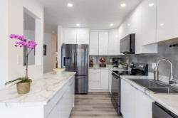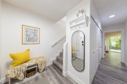 Rare find!!! Nearly 2,000 sq.ft. 3-level townhouse backing onto a tranquil greenbelt. The entry level opens to a fenced backyard and a large flex/rec room—ideal as a home office, gym, or 4th bedroom. Bright, airy main floor with a gas fireplace and a sunny sundeck facing trees for exceptional privacy. Fully renovated kitchen, refreshed bedrooms, and new light fixtures. Upstairs, the primary retreat offers dual sinks, a soaker tub, and a separate shower. $100K+ in upgrades: laminate flooring throughout; ~4-year-new appliances, furnace, and boiler. Ample in-home storage. Walk to Kennedy Trail Elementary; minutes to shopping, restaurants, theatres, and transit, with quick access to major routes. A refined blend of space, privacy, and convenience—Move-in Ready. OH CANCELED THIS WEEKEND