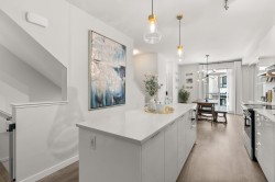 WALKABLE LOCATION. Welcome to Townsend. This bright 3 bedroom 1374 sqft home features stylish laminate flooring, updated lighting, custom woodwork, a convenient main floor powder room & private deck off the dining room. Gourmet kitchen features custom cabinetry, stainless steel appliances, a spacious island w/ engineered stone countertops. The primary bedroom offers a large walk through closet & a luxurious ensuite with a spa shower. 9 ft ceilings, lots of natural light. Tandem garage offers options. 5900sqft of incredible resort style amenities ! A great room lounge, a teen lounge area, an indoor kids play area, party room, outdoor workout area & dog wash. Steps away from the YMCA, shopping &restaurants. No car-walk everywhere. Great for commuters with quick access to major routes.