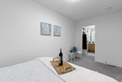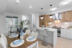 Brand-new, ultra-modern 3BR+Flex, 2-bath townhome surrounded by a protected greenspace with a private playground & amenity building perfect for your private events. The bright, airy main level features 9' ceilings, Fisher & Paykel appliances, motorized blinds, and a kitchen made for cooking enthusiasts with a gas cooktop, quartz countertops, and ample storage in custom cabinetry. Enjoy a ROOFTOP PATIO perfect for summer entertaining, complete with a gas BBQ hookup. Just a short drive to Hyland Elementary and Sullivan Heights Secondary & minutes to Newton Town Centre, shops, parks, transit, and major amenities.