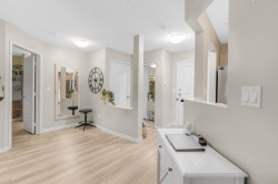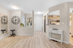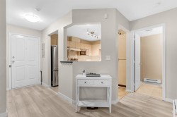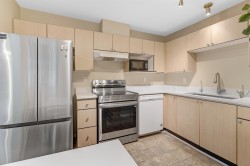 Welcome back to The Sommerset in Guildford - a beautifully maintained community perfectly located near everything you need. This move-in ready 2-bedroom home features stylish vinyl flooring, a high-end quartz countertop, a sleek undermount sink, a new dishwasher, fridge and stove. The spacious primary bedroom with ensuite is thoughtfully separated from the second bedroom for privacy. Enjoy peaceful views of trees from your covered balcony on the quiet side of the building. Low strata fees include gas, hot water, and clubhouse access. Comes with 2 parking stalls and a storage locker. Steps to Guildford Town Centre, supermarkets, parks, schools, and medical facilities. OPEN HOUSE - SUN 2:00-4:00pm
