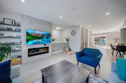 Centrally located in SOHO 2 by Zenterra, this premium townhome truly has it all. Spacious and thoughtfully designed, it features a large fenced front yard plus the convenience of additional street parking. The versatile basement includes a window and ensuite—perfect as a private bedroom for guests or extended family. A custom walk-in laundry room provides exceptional functionality rarely found in townhomes. Enjoy stunning ocean views and all-day sunshine from the expansive 760 sq. ft. rooftop deck, complete with a gas hookup for effortless entertaining. The double garage offers extra storage, while forced-air heating, central A/C, and tankless hot water ensure year-round comfort.