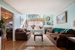 Welcome to Strawberry Hill! Bright 3-bedroom + loft townhome featuring updated kitchen with pantry, white cabinets, newer applainces . Living room offers gas fireplace, vaulted ceilings & large windows. Family room opens to private patio & grass area. Upstairs includes primary with 3-pc ensuite & double closets plus a skylit loft/flex space. Updates include wooden flooring, Italian tile, A/C & furnace, Brand new stove & Washer Dryer Close to shops, schools & transit.