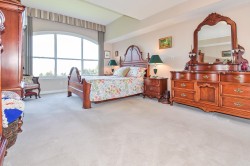 Welcome Home to OCEAN PARK GARDENS! This Gorgeous and very Spacious just under 2000 sq ft 3 Bed/2 bath Top Floor Rancher style condo is in Pristine condition from Original Owners. With a unique Feng Shui style Floorplan and in-floor Radiant Heating throughout. Stereo speakers in 5 rooms great for Entertaining! With Stunning West facing OCEAN Views and breathtaking Sunsets. Over 2 acres of Private Grounds to explore including Garden paths, Nature Pond, Greenhouse, Courtyard and Fountains. Inside features a beautiful Clubhouse, Workshop & Exercise room. Plus the building has a Brand New Roof! Amazing location close to Crescent Beach & White Rock Beach. 2 side by side Parking stalls & an oversized Storage Locker. Pets & Rentals allowed, this one is a Must See!