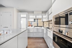 A thousand sunsets could never be enough in this striking penthouse. Experience the golden hour in a dramatic, captivating way - rooms bathed in copper hues overlooking city views that stretch west beyond the lights of the Lions Gate Bridge. Rarely does a floor plan feel as thoughtful as this ultra-private 2 bedroom, 2 bath penthouse with an expansive 39' terrace. Clean, modern lines, ceilings and walls of glass create a home drenched in natural light. Built in luxury with highly efficient air cooling, in-floor radiant heating, gas BBQ hookup, oversized parking and curated amenities. At the heart of Surrey's rising downtown - just blocks from the upcoming SFU Medical Campus it's an exciting time to own a home at the center of an urban transformation set to rival that of Vancouver.