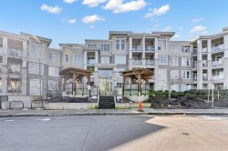 Welcome to Headwaters Club in South Surrey nestled in a peaceful setting. This unit offers a spacious well designed layout that welcomes you with beautiful grey tone kitchen with quartz countertops, entertainers island, stainless steel appliances, gas range and elegant lighting. The 2 bedroom 2 bathroom unit has built in wardrobe style closets, with amazing ensuite with modern fixtures through out. There is also private covered patio, and such amenities as a solarium styled gym located in the courtyard, common area for entertaining large groups and many trails near by. Close to schools, golf courses, restaurants, transit, shopping and more.