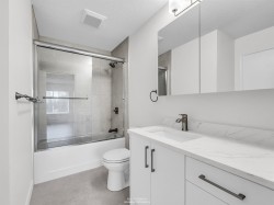 Fabulous Top-Floor Corner Condo at La Costa Green! Fully renovated in 2025, this stunning 2 bed/1bath home offers modern style and comfort. The 2nd bedroom has a closet! Enjoy a bright, open layout with new cabinets, new quarts counters, new stainless steel appliances, new floors, just painted, gas fireplace, and in-suite laundry room with side-by-side washer/dryer! The large spacious deck is perfect for relaxing or entertaining. Peek-a-boo mountain views too! Family-friendly building with parking, locker, guest suite, visitor parking, and clubhouse. 1 cat * 1 dog (max 15" to shoulder) allowed. Prime location close to shopping restaurants, amenities, transit, and Kwantlen University. Be the first to live in these renovations as they have just completed. Turn-key living at its best!