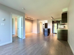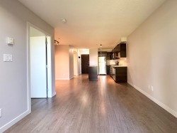 Enjoy top floor living in this bright 1 bedroom plus open den unit in Aura 2, featuring a peaceful west-facing view of a quiet greenspace. In like-new condition and meticulously cared for. Highlights include laminate flooring, stainless steel appliances, updated countertops, and in-suite laundry. The building offers secure fob entry, surveillance cameras, and double gated underground parking. Conveniently located just minutes from shopping, SFU campus, SkyTrain, and Highway 1. An elementary school and community park are right across the street. Includes one secured parking stall and a storage locker. Ideal for first-time buyers or investors seeking comfort, security, and convenience.