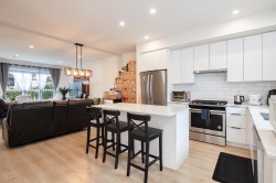 This beautifully designed 3-level townhome offers the perfect balance of comfort and functionality. The upper floor features 3 spacious bedrooms and 2 full bathrooms, including a primary bedroom with a walk-in closet and private ensuite. On the main level, enjoy open-concept living and dining areas, a stylish kitchen, powder room, and a private balcony. The lower level includes a cozy family room, covered front porch, and a double car garage. Located in a well-maintained community with access to a clubhouse, this home is ideal for families seeking space, convenience, and a community living.