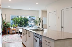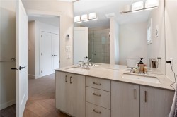 Welcome to this beautifully appointed three-bedroom, three-bathroom unit. The main level features an open-concept kitchen, dining, and living area—perfect for entertaining—along with a two-piece powder room and a storage room. Upstairs, you’ll find a generous primary bedroom complete with his-and-hers closets and a luxurious ensuite featuring quartz countertops, heated tile floors, dual sinks, and a large walk-in shower. Two additional bedrooms and a full bathroom complete the upper level. Quality finishes throughout include a gourmet kitchen with quartz countertops, stainless steel appliances, and a cozy electric fireplace. Enjoy the convenience of outdoor storage and two dedicated parking spaces right in front of the unit. Ideally located within walking distance to beaches, trails, and local amenities, this home is perfect for families, first-time buyers, or anyone seeking a low-maintenance lifestyle in a central location. Please note: short-term rentals are not permitted.
