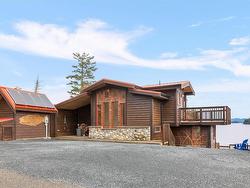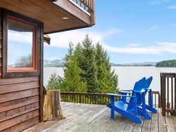Welcome to your waterfront oasis at Salmon Beach! Situated just a short distance from Ucluelet and nestled in the picturesque Barclay Sound, this stunning waterfront cabin is the perfect retreat. The primary bedroom and ensuite are located in a loft on the second floor. Cozy up next to the fireplace in the sitting room, creating the perfect ambiance for relaxation. The main floor boasts two guest rooms, a bathroom, and an open-concept living and kitchen area. Step outside onto the expansive decks, perfect for savoring your morning coffee or hosting summer gatherings. The grassed front lawn provides ample space for outdoor activities. The owners have taken excellent care of this cabin, ensuring it is in impeccable condition. New windows were installed in October 2023. Additionally, the property is equipped with solar panels and countless other features that make it truly unique and environmentally conscious.