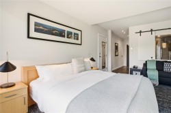 Luxury Studio Suite with Water Views at Black Rock Oceanfront Resort. This upgraded main-lodge studio offers refined coastal living with enhanced privacy and southwest exposure. The custom kitchen expansion includes quartz countertops, extended base cabinetry with oversized drawer and shelving, Wolf induction cooktop, and Whirlpool full-height fridge, convection oven/microwave, and dishwasher. The spacious spa-inspired bathroom features a Riobel rain-head shower, designer sink, pendant lighting, a backlit mirror with adjustable settings, and heated floors. Stay comfortable year-round with a heat pump for heating and cooling plus a cozy gas fireplace. Positioned on the 3rd floor, the suite is easily accessible by elevator and enjoys tree-framed water views and natural light. A premium studio retreat in a sought-after oceanfront resort.