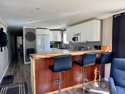 Looking for a low maintenance compact home? This one may fit the bill. Cozy 2 bedroom mobile is 720 sq ft but has everything you need. Great for a bachelor or a starter home. Many renovations and upgrades have been done over the years. Modern spacious kitchen is bright and cheery with a sit up bar with a super cool live edge bar top. Living room has lots of big bright windows letting in lots of sunshine and views. Good size yard is neat and tidy and is fully fenced. Great views all around and only a short walk to the downtown shopping area.