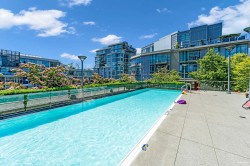 One of the best layouts! Excellent Location in the heart of the Olympic Village. Move in condition, cozy, clean, southeast facing, functional 1-bedroom with Den for home office, plus a bright flex room as a junior bedroom! Also featuring air conditioning, granite countertop, Bosch appliances. Building amenities include: outdoor pool, hot tub, well equipped gym, party room. Steps to best restaurants, Heritage Craft House, Creekside Community Centre, waterfront Park, Shopping, Banks, Olympic Village skytrain Station (a few minutes to downtown). Open House Dec.14, Sunday 2:00-4:00 pm.