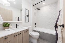 Experience refined luxury in this exclusive 4-bed, 3.5-bath Vancouver residence developed by Peterson, offering 1,908 sq.ft. of elegant living across three beautifully designed levels, plus an attached garage and generous private outdoor space. The chef’s kitchen features Wolf and Sub-Zero appliances, custom cabinetry, and sleek Dekton countertops. The spa-inspired primary suite includes vaulted ceilings, a freestanding tub, custom shower, and Calacatta tile. Premium features include hardwood floors, radiant heating, air conditioning, Sierra flame fireplace, integrated audio, EV charging, and custom millwork. The lower level offers a spacious bedroom, full bath and laundry, while the upper floor provides three well-appointed bedrooms. Located in the coveted Osler and Churchill catchments.