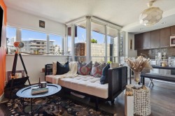 Welcome to Marina by Concord Pacific! Enjoy this 666sf 1 bed+den open-concept living, a modern kitchen with granite counters and gas stove, A/C, and a private balcony. Resort-style amenities: indoor pool, hot tub, sauna, bowling, gym, theatre, 24hr concierge. Steps to seawall, parks, Yaletown dining, shopping, SkyTrain. Experience vibrant waterfront living—book your showing today! Tenanted property-showings by appointment only on Thursdays between 5:30-6pm First open house May 24 Sat 2-4pm