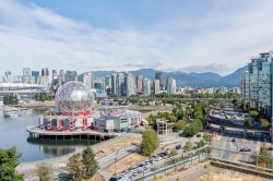 WELCOME TO CENTRAL BY ONNI - Do not miss this rarely available and coveted 1 BED + SOLARIUM + 2 DENS floor plan with the most efficient lay out: spacious living/dining area, fresh designer paint, a gourmet chef's kitchen with quartz countertops and S/S Jenn-air appliances, air conditioning, huge windows + huge views. Enjoy panoramic views of False Creek, the North Shore Mountains, and the glittering Vancouver Skyline from your private waterfront balcony. Building amenities include: Visitors Parking, Full-Time Concierge, Rooftop terrace w/ communal plots, lounge, movie theatre, fully equipped gym, yoga & dance studio + bike room. Home complete with 1 parking, 1 storage. This is more than a home—it’s a lifestyle statement in one of Vancouver’s best neighbourhoods. OH: Sun Nov 9, 2-4pm.