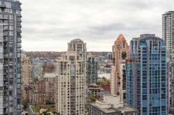 Discover this 2 Bed 2 Bath outstanding corner unit, showcasing panoramic views of the city, mountains, and False Creek. Located in the heart of downtown, 2 South East facing solarium, one can be a den! New counter top / sink in the kitchen and new paint. This unit offers a well-designed, space-efficient layout with no wasted space. Building with amenities like a pool, jacuzzi, sauna, gym and private garden, also steps away from a wide selection of restaurants, shops, and transits. Very well kept unit, building is also well maintained, come check out yourself. This property is ideal for first-time buyers or keen investors.
