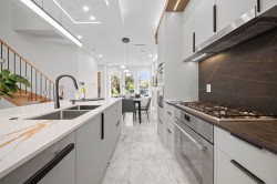 This elegant ½ duplex in prime Kitsilano offers 2,327 sq ft of refined living across three levels. Bathed in natural light with soaring ceilings, the open main floor showcases a gourmet kitchen with premium appliances, custom cabinetry, and a large island perfect for gatherings. Enjoy seamless indoor outdoor flow to a private fenced yard and covered patio for year round enjoyment. Upstairs features three spacious bedrooms, including a serene primary with balcony and spa like ensuite. Bonus: a 2 bed legal suite, A/C, garage, gated parking, and full security system with cameras all around. A rare opportunity to own a high-end home in one of Vancouver’s most coveted neighbourhoods, Kitsilano! Steps to top schools, cafes, parks, and beaches, offering an unmatched West Coast lifestyle.