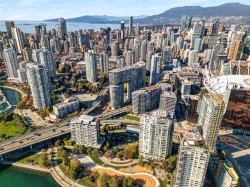 WELCOME TO THE MAX- Perched on the 26th level, this 2 bed + den corner suite has been thoughtfully updated, and welcomes you with streams of natural light + expansive views of False Creek from every room. This efficient floor plan has no wasted space: separated bedrooms for ultimate privacy, open concept kitchen/dining + breakfast bar, living and dining rooms w/floor to ceiling windows. Home features AC in living room, open concept kitchen with stainless steel appliances. Complete with 1 Parking & 1 Locker. Residents of the Max get exclusive access to Club Max: concierge, gym, indoor pool, sauna, hot tub, party room + more. 1 PARKING/ 1 LOCKER/ 3 ELEVATORS. Nestled next to the MARINASIDE SEAWALL, Small Victory, Urban Fare, 500+ restaurants. SHOWINGS BY APPT.
