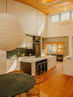 Architect-designed by Prix de Rome–winning architect A.A. Robins, this modern residence sits discreetly just off Main Street. Clad in corten steel, the home features soaring 25-foot ceilings, clerestory windows, and five skylights that flood the loft-like interior with natural light. Heated concrete floors and high-efficiency systems—including a heat pump, A/C, and HRV—ensure comfort with low maintenance. The flexible layout offers a spacious primary suite, two office nooks, and a convertible study and loft. A heated garage adds convenience. Recent upgrades include the roof, plumbing, kitchen, boiler, windows, and EV charger. High-end appliances by Miele, Bosch, and Liebherr pair with designer lighting from Artemide, Bocci, and Akari. Steps to everything—yet unlike anything.