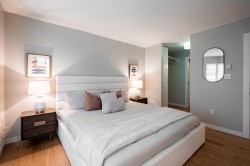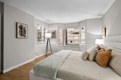Woaw…the West End enchants once more! Quietly set on the quieter side of this boutique, fully concrete rainscreened bldg, this 1002 sqft corner home shines with light, elegance, and that certain je ne sais quoi. A welcoming foyer opens to beautifully renovated spaces where modern comfort meets timeless style. Two spacious bed at opposite ends, two full baths, and open living areas create the perfect blend of entertaining ease & cozy evenings by the gas fireplace. Enjoy your 80 sqft covered balcony year-round—espresso or evening wine included. Extras: low turnover, RENOVATED GUEST SUITE, in-suite laundry & storage, pet friendly (1 cat or 1 dog), visitor pkg, bike room, and exceptional maintenance. Easy living meets West End magic!