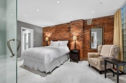 Stylish loft residence at the Del Prado. Located in the 1912-built Percival Building, this renovated home w/ a European flair boasts 1,334sf of interior & 2 bedrooms, 2 bathrooms, oversized living room, dining room & chef’s kitchen. Features include brick walls, Carrera marble floors, ceiling panels & concrete ceiling joists. The Juliette balcony & floor-to-ceiling windows showcase south exposure & Yaletown vistas. The French-inspired kitchen is furnished w/ appliances by Thermador & Jenn Air, storage wall, gas cooktop, beverage fridge, marble counters/backsplash & farmhouse sink. The primary bedroom features a walk-in wardrobe leading to the ensuite w/ pedestal sink. One off-site parking space is included & A/C ensures year-round comfort. If viewing on Zillow pls text/email leasing agent
