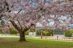 TOP 1/2 duplex with City, water & mountain VIEWS overlooking Cherry Blossom Park. Ideally situated in a special pocket of Kitsilano, this property has North, South & West exposures with over 400 sq ft of decks. 2 bedrooms & 2 baths, vaulted ceilings and skylights provide plenty of natural light. Well maintained with renovated kitchen & baths. Adjacent to Point Grey Road and steps away from Jericho Beach, RVYC & Jericho Tennis Club. Kitsilano & Point Grey restaurants and coffee shops a short walk away. Single car garage as well as an open parking stall. A great neighbourhood! *Some photo is virtually staged.
