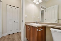 This 829sf, 2 bedrooms, 2 bathrooms condo features high ceilings, upgraded engineered vinyl planks flooring throughout, a functional layout and open expansive views from the balcony. The formal foyer with tiled floors opens up to the functional rectangular living room with a gas fireplace and access to the balcony. The lovely kitchen comes with stainless steel appliances, serving counter with breakfast bar, and wood grain veneer cabinets. The primary bedroom has a nice view, a walk-in closet and a 5 pcs ensuite with two lavatories. The 2nd bedroom also faces Oak Park. The 3 pcs main bathroom comes with a shower stall. Rent includes one parking stall.