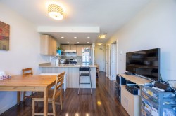 Welcome to the centrally located Skyline Residences – this well-designed 1 bedroom + den + flex room condo offers stunning city and mountain views from your spacious living area. The bright den is ideal as a reading nook or study, while the flex room provides the perfect space for a home office or extra storage. Enjoy a sleek gourmet kitchen featuring a gas cooktop, stainless steel appliances, and a convenient breakfast bar. Unwind in the spa-inspired bathroom with a deep soaker tub and elegant tile finishes. Residents enjoy access to top-tier amenities including a fitness centre, party lounge, and rooftop garden. Steps to the SkyTrain, local shops, dining, parks, and top schools. Includes 1 secure parking stall and a large storage locker. Book your private showing today!
