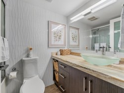 False Creek Prepaid Leasehold - Waterfront and Absolutely Stunning! Million Dollar View and Three Stories of beautifully laid out, and fully renovated space. With two generous bedrooms, open concept living, dining, and kitchen, plus a spacious family room. Gorgeous vinyl plank flooring, new high gloss kitchen cabinets, quartz countertop, contemporary lighting, and renovated bathroom, new appliances - nothing to do but move in. Relax by your cozy stone fireplace in the winter and on your covered patio in the summer. Includes parking and storage, one pet allowed (up to 44 pounds). Very well maintained complex with a diligent strata and healthy contingency fund. Viewings by appointment.