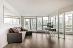 Coopers Pointe by CONCORD PACIFIC. This bright & spacious 1 Bed + Den end unit offers 730 sqft of thoughtfully designed living space. The kitchen features refinished cabinetry, granite countertops, stainless steel appliances, & gas cooktop. Recent updates include brand-new flooring, fresh paint, new washer/dryer & a beautifully updated 4-piece bathroom w/ marble countertops. Generous primary bedroom comfortably fits a king-size bed, while a bonus pantry provides valuable extra storage. Enjoy world-class amenities: concierge service, clubhouse, indoor pool, sauna/steam room, hot tub, bowling alley, 2 gyms, party rooms, theatre & more. Perfectly located on a quiet corner, just steps to the Seawall, parks, PARQ Casino, Urban Fare & Yaletown’s top restaurants. Pets welcome! Private EV Charger!