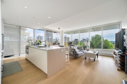 Welcome to Mirabel by Marcon, where exceptional craftsmanship meets the visionary design of Henriquez Partners Architects and the award-winning talent of designer Alda Pereira. This highly coveted unit offer 2 bedrooms and 2 bathrooms, exemplifying West Coast modernism with its minimalist elegance. This residence features high-end finishes throughout, including exquisite hardwood floors, state-of-the-art air conditioning, and premium stainless steel appliances. This bright, sun-drenched living area is accentuated by floor-to-ceiling windows, seamlessly extending to a generous size balcony that enhances the indoor/ outdoor living. Situated in the vibrant west end, this unit is conveniently located within walking distance of shopping, parks, and the seawall.