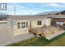 Welcome to Country Lakeshore Estates — a rare double-wide manufactured home that’s turned the other way compared to most in the park, facing the mountains instead of your neighbour’s window. Step outside (or just peek through the windows) and take in wide, unobstructed hillside views — entirely yours to enjoy. Inside, the bright open-plan living space makes every morning feel like a spotlight on the mountains. The kitchen? Tons of cupboards — finally, room for all your kitchen gadgets and maybe even that collection of “just-in-case” coffee mugs. The primary bedroom boasts hillside views, a walk-in closet, and a private door straight onto the deck — coffee in hand, shoes optional. The second bedroom has a generous double closet, and the spacious den is all yours to make an office, craft cave, or guest room. Laundry and storage are conveniently off the entry — because functional spaces can be smart and satisfying. Outdoors, the large deck is your launchpad for morning coffee, sunset BBQs, or simply staring at the mountains like it’s a full-time hobby. And Okanagan Lake? Just a very short walk — or an even shorter jog — away. Quick dips, long swims, or spontaneous paddleboarding are all on the menu. Parking? Tons. Extra space between homes? Check. Room for trucks, toys, and visiting friends? Absolutely. Mountain views, space to breathe, lake access within a minute’s notice, and a layout that just makes sense. This is the one that stands out — in the right direction. (id:27)