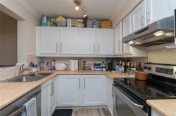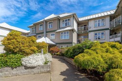 Ground-Level Opportunity – Bring Your VisionThis 2-bed, 2-bath suite in Carrington Court offers your own private covered patio with peaceful green views—ideal for unwinding after a busy day. Enjoy one of the most convenient locations around- walking distance to the Galloping Goose Trail, Selkirk Trestle, Arbutus Park, transit, and local shops and cafes.Inside, you'll find 879 sq ft of functional space with open living/dining, a cozy gas fireplace, in-suite laundry, and large windows. The primary bedroom includes a walk-in closet, full ensuite, and views of the greenery.It could use some freshening up—look past the clutter and imagine the potential. Whether you're buying your first home, downsizing, or investing, this is a solid opportunity.Carrington Court offers secure underground parking, separate storage, and a well-kept, quiet building.Check out the virtually staged photos for inspiration—then bring your ideas and your offer.