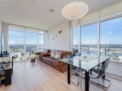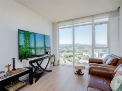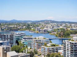 Enjoy breathtaking views from every room in this exceptional 17th-floor corner unit. Gaze out at the Parliament Buildings, Inner Harbour, Gorge Waterway, Mt. Baker, Downtown Victoria, Victoria West Park, and even the Strait of Juan de Fuca!This beautifully designed condo features 9-foot ceilings, floor-to-ceiling windows, roller blinds, stainless steel appliances (including a gas stove), and in-suite laundry. The spacious primary bedroom offers direct access to the main bathroom for added convenience. Located in Promontory, a professionally managed, steel-and-concrete building with premium amenities, including: Air conditioning, Concierge service, Owner’s lounge, Fitness centre, On-site caretaker.Just a short walk to Downtown Victoria, the Songhees Walkway, Inner Harbour, and Westside Village – everything you need is only minutes away!