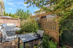 Don't miss this centrally located 3 bedroom and 2 bath townhome in excellent condition. Built in 2002, this home offers all the comforts one needs in a compact floor plan over 3 levels. In a quiet complex with beautiful private gardens, this home boasts 1,290 sq ft of convenient living space. A bright kitchen, and a cozy living/dining room featuring Vaulted ceilings and an energy efficient gas fireplace to warm the space. Bonus: gas included in strata fee! Wander upstairs into the spacious master suite complete with ensuite & large closet along with a second bedroom, bathroom and laundry. The top level you will find another bedroom perfect for guests! Through the bright living room onto the back patio, enjoy the space for a summer BBQ! In a pet & children friendly complex, this townhome is an ideal starter home for a young family! Extremely close to many amenities, including coffee shops, schools, Crystal Pool, Save-on-Foods grocery store walking distance away, & more!