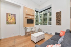 Welcome to the Janion, originally a railroad hotel built back in 1891, now reimagined by Reliance Properties & Merrick Architecture becoming a new landmark in Victoria's Upper Harbour District. You'll love the location, flanked by China Town, Market Square and Bastian Square with great shopping and restaurants in the LoJo area. This studio unit offers in suite laundry, highly functional sofa/Murphy bed, 12' ceilings, built in storage, a well thought out floorplan that packs a lot of punch for its size. Enjoy working harbour ocean views via 2 excellent sized windows. This unit is one of the newer units in the building back when Reliance added on to the original structure. Separate storage locker. Shared amenities include kayak and bike storage, roof top BBQ area to entertain and take in the amazing views of the Inner Harbour and party room. Pets are allowed.